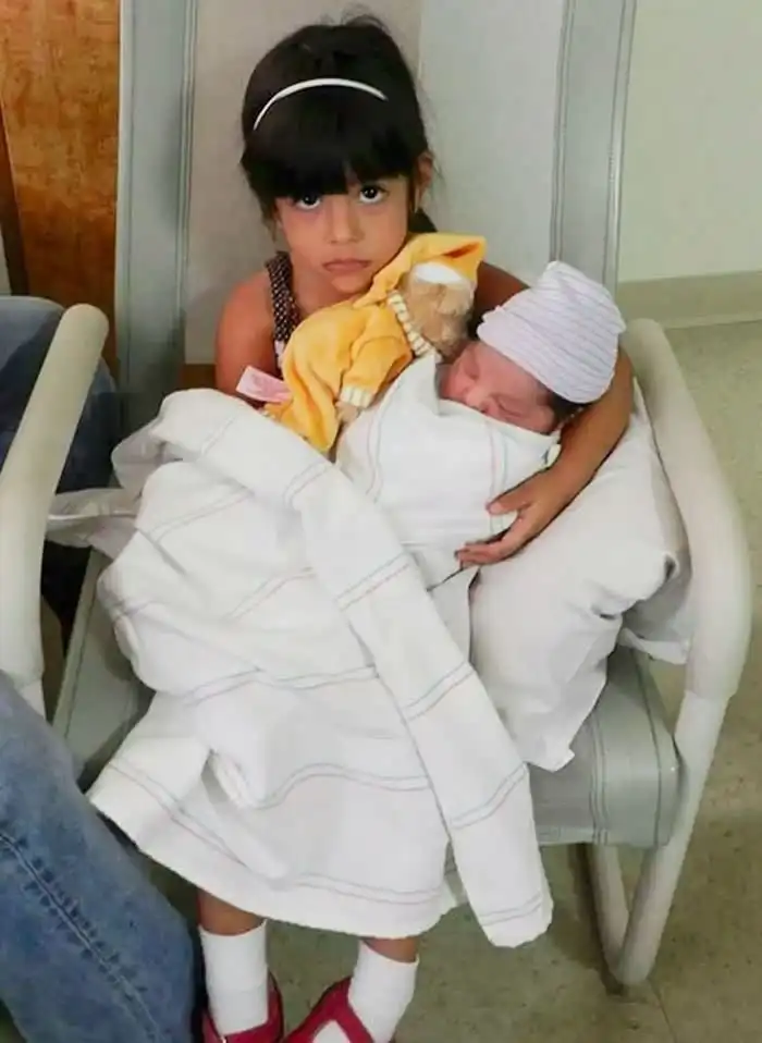 Дети по-разному реагируют на появление в семье младшеньких: одни радуются живой кукле, другие с опаской, а то и с агрессией, смотрят на существо в пеленках, над которым воркуют родители. Фото с недовольными мелкими получаются особо колоритными.