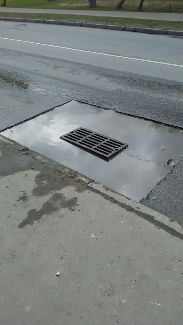Открывает подборку дорожного ада поглощающие ямы и ливнёвая канализация
