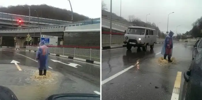 "Дорожник" — человек, делающий кое-что непонятно зачем в дождливую погоду*