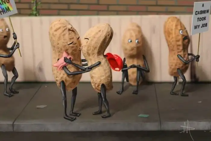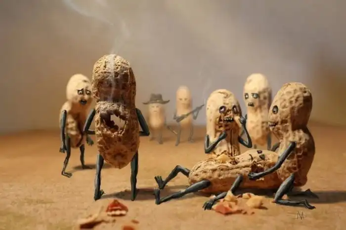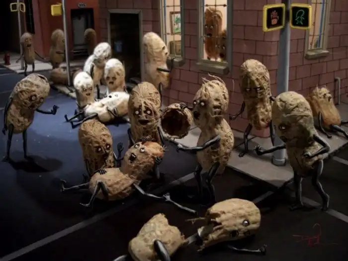 Дэвид Мишра создает удивительные миры с помощью арахиса. Они сталкиваются с теми же проблемами, что и обычные люди, и так грустно и одновременно смешно смотреть на трудности арахисовых человечков.