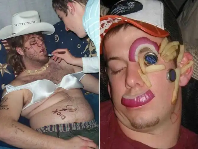 Чтобы со спокойной душой расслабляться на вечеринке, нужно быть уверенным в своих товарищах. А то попадутся неадекватные дятлы, которым нужно во что бы то ни стало поиздеваться над тем, кто первым сошел с дистанции.