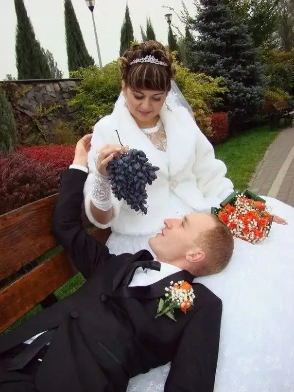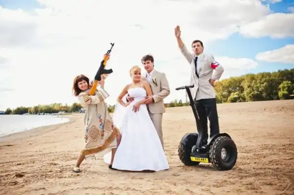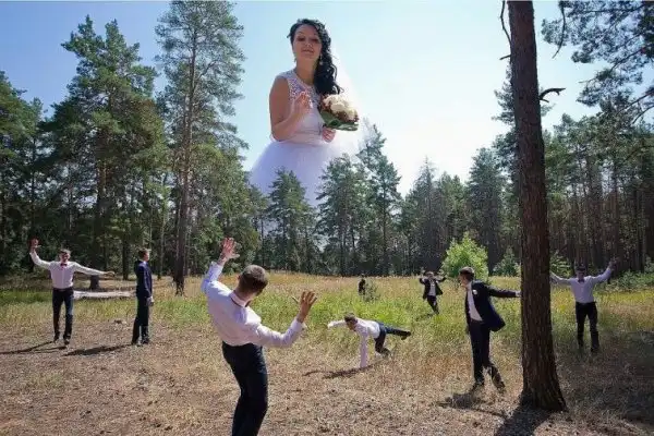 Что такого беспощадного в русской свадьбе, спросите вы? Да хотя бы чего стоят «шедевры» криворуких фотографов и гуру фотошопа, которые неустанно удивляют гениальными идеями и задумками в сфере свадебной фотографии. Мало им знаменитой «невесты на ладошке» (кстати, есть уже и жених), над которой кажется, смеётся весь мир, так они пошли дальше и придумали ещё полсотни нелепых ракурсов с участием жениха, невесты и присутствующих гостей. Сообщество "True Russsian Wedding" занимается тем, что собирает эти шедевральные снимки, а мы в свою очередь, предлагаем вам посмеяться, ужаснуться и никогда не делать подобные фотографии.