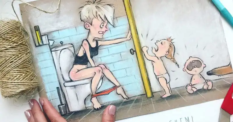 Пользовательница Marypaint, иллюстратор и автор метких шаржей, частенько делилась с сетевой публикой своими работами, а потом вдруг пропала… На днях она снова появилась на просторах сети, наглядно продемонстрировав причину своего отсутствия. Ее серия рисунков, честных и ироничных, прекрасно иллюстрирует будни молодой матери, полные недосыпания, хаоса и неловких ситуаций.