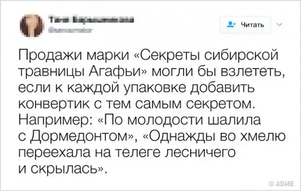 Твиттер не перестает нас радовать остроумными сообщениями, и мы ему за это очень благодарны. Ведь наша статья пополнилась такими шедеврами, как рассказ о секретах сибирской травницы или криком души к производителям кроссовок. Заинтригованы?
