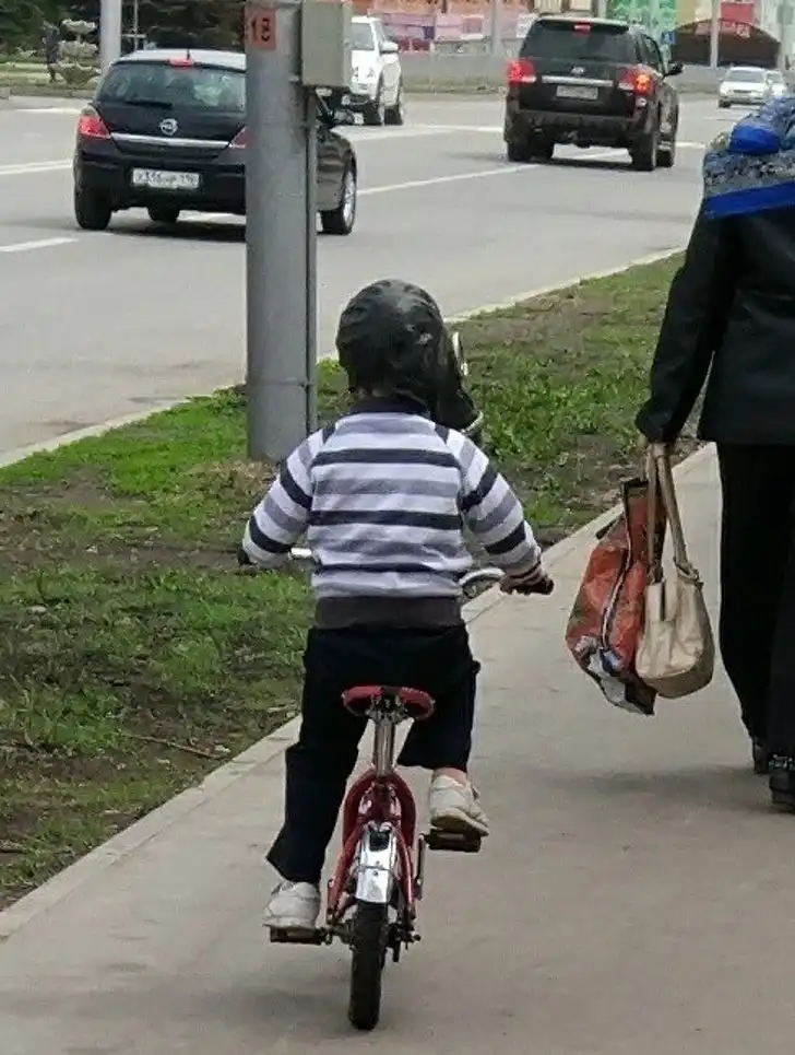 <<Стоял на остановке, и мимо меня проехал этот маленький мальчик. На велосипеде и в противогазе>>