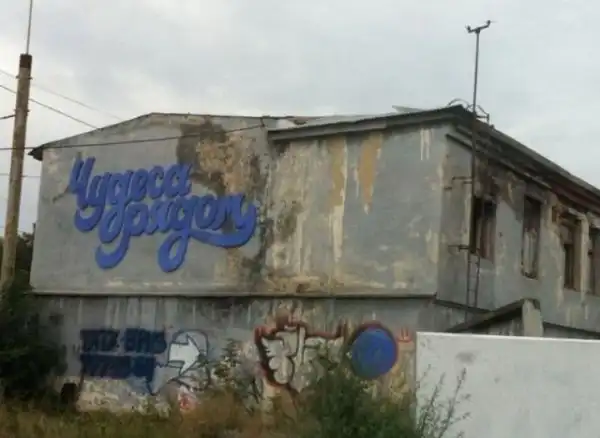 Фунтик с заколоченными дверями типа " Все ушли на фронт",возле нашего дома стоит частенько.