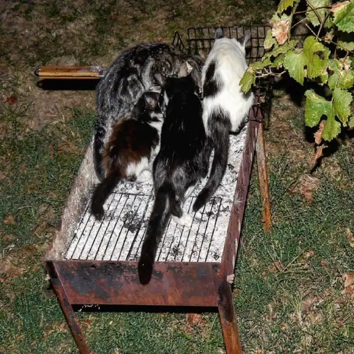 Когда отвернулся на секунду от мангала, и налетели соседские коты