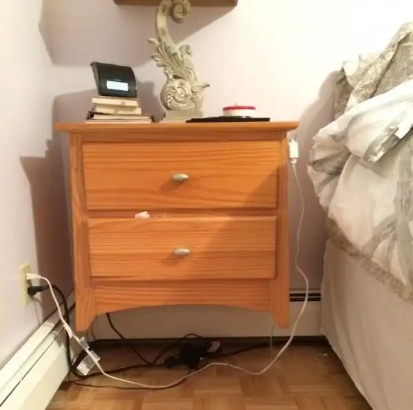 4. «Родители купили новую кровать, и оказалось, что она намного выше папиной прикроватной тумбы. Его решение проблемы: прикрутить тумбу к стене»