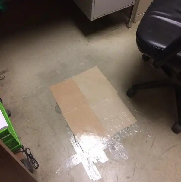 12. «Коллега „починил“ линолеум в офисе при помощи картона и скотча»