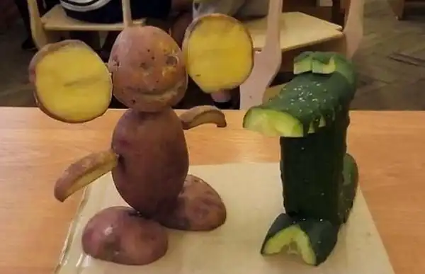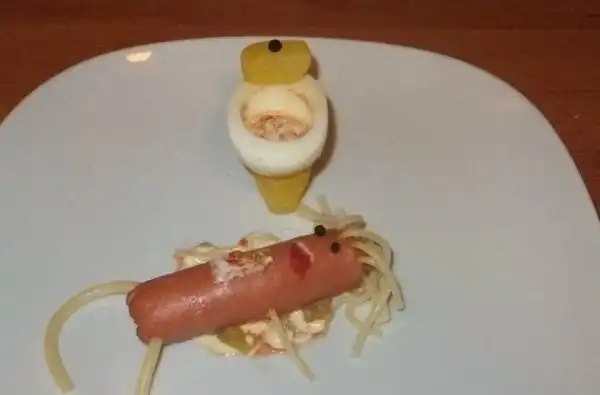 Сейчас будет больно. Сытно, но больно. Эти картинки ударят под дых вашему эстетическому восприятию еды. Големы из морковки, крокодилы их огурца, чебурашки из салата Оливье и неизвестной субстанции, экспозиции из куриных лапок и крылышек еще долго будут пугать вас флешбеками дождливыми осенними вечерами.