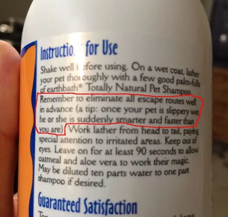 «Перед купанием перекройте все входы и выходы (совет: когда ваш питомец мокрый, он неожиданно становится умнее и быстрее вас)».