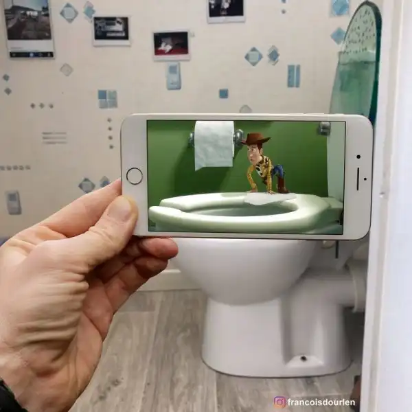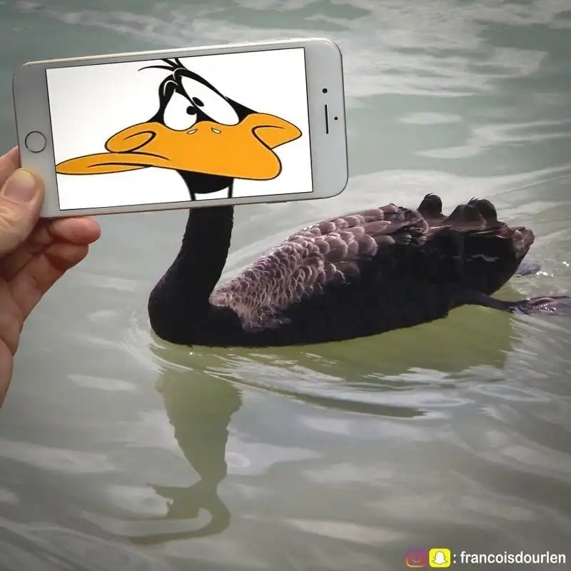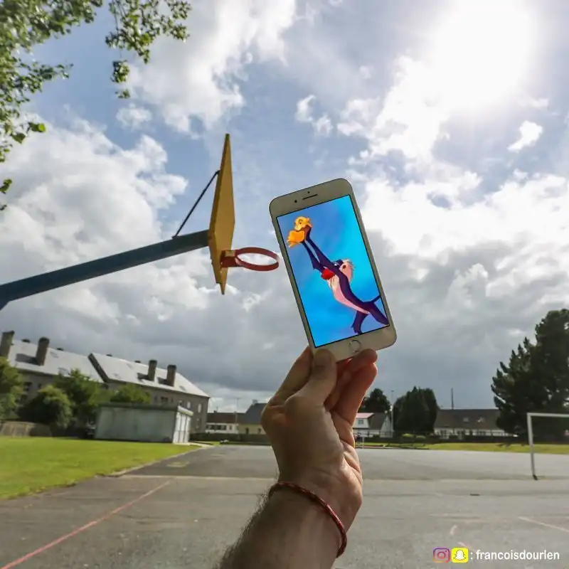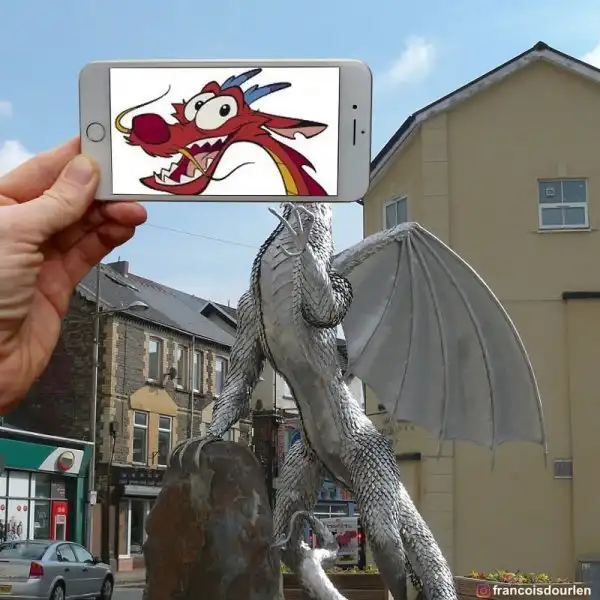 Франсуа Дурлен - учитель истории из французского Шербура. Для собственного развлечения он ведет веселый проект в Инстаграме, создавая коллажи из реальности и выдумки, и соединяя их идеальным образом. Кадры из фильмов, мультфильмов, видеоигр подбираются так, чтобы в сочетании с окружающим пейзажем получилась необычная, смешная и несколько сюрреалистичная картинка.
