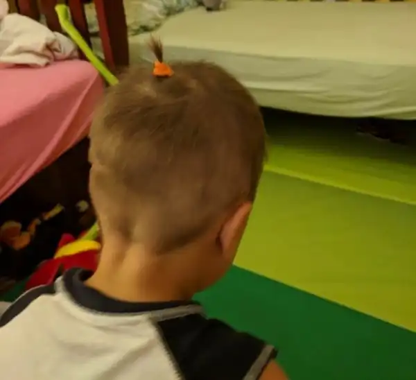 12. «Мой сын хотел прическу как у его дяди. Пока получилось вот так»
