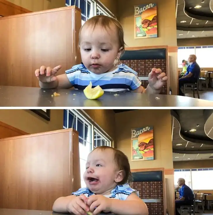 Одна из самых смешных вещей — наблюдать за тем, как ребенок познает, что съедобно, а что нет