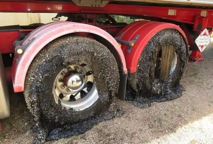 Ничего особенного, просто дорожный асфальт прилип к колесам