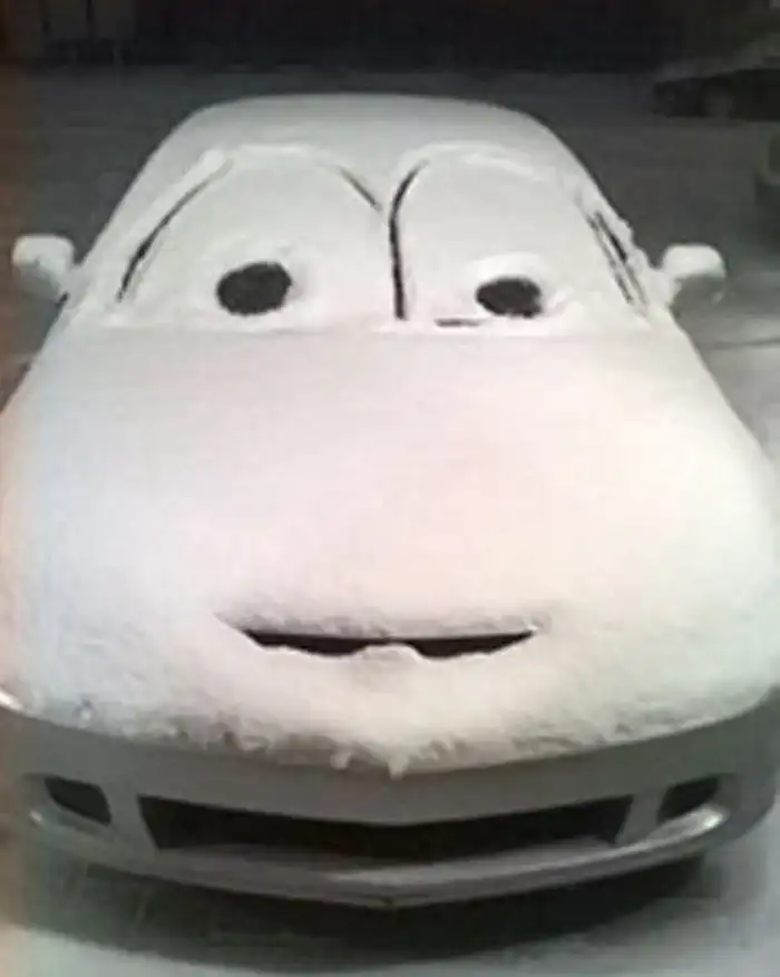 6. После снегопада можно все машины рядом с домом сделать глазастыми, чтобы порадовать окружающих.