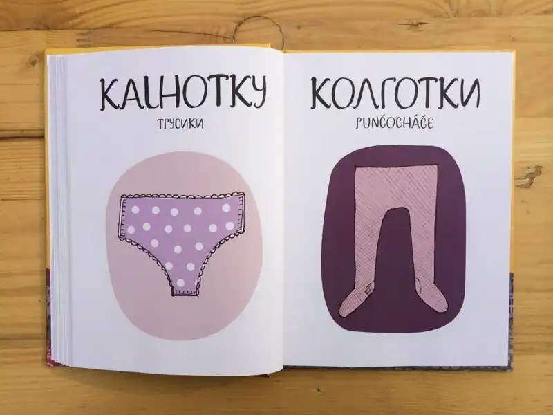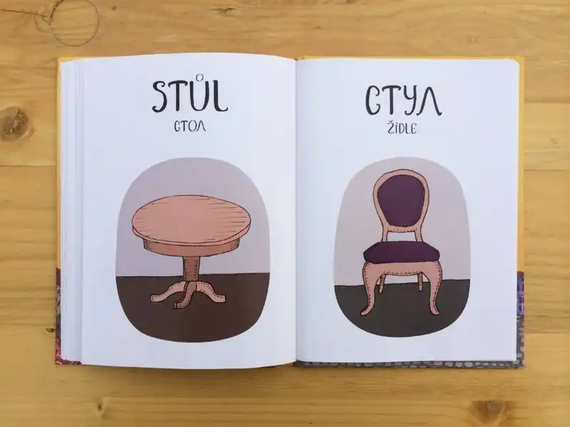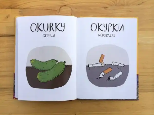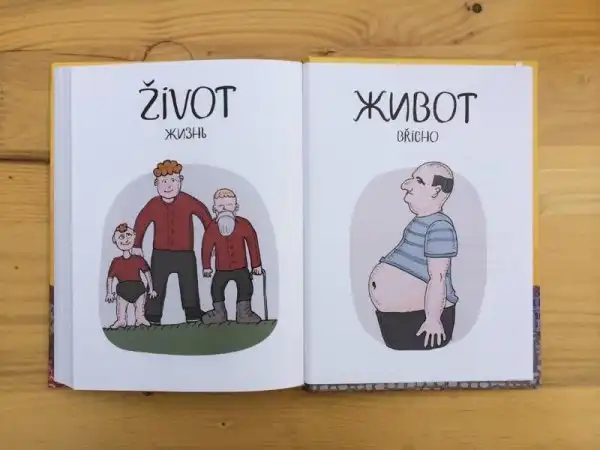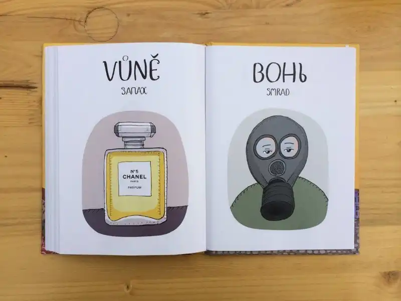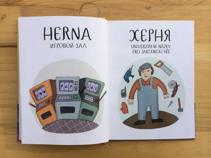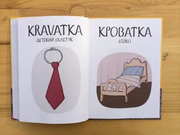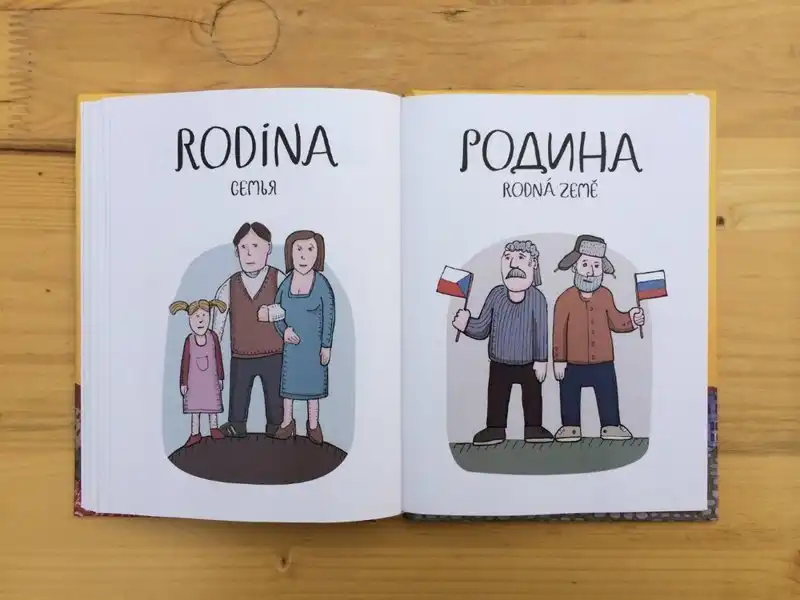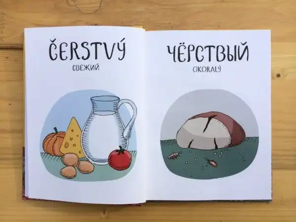 В словарике собрали 26 пар слов из русского и чешского языка, которые пусть и читаются аналогично, порой имеют совершенно непредсказуемый перевод. К таким словам-близнецам создали забавные иллюстрации.