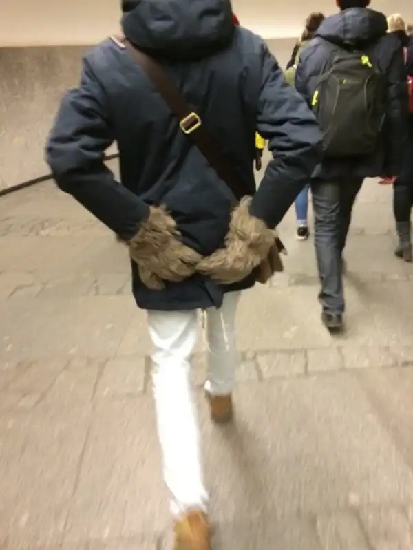 Ка-ак зацепится за эскалатор, будут уже другие фото в инеты постить.