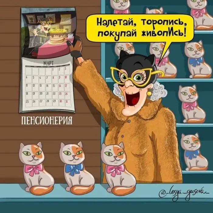 10. А вот и Женщина-Кошка. Юбилей отметила и теперь календарики продаёт с пенсионерами