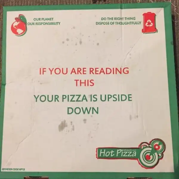 «Если вы читаете эту надпись — ваша пицца перевернута».