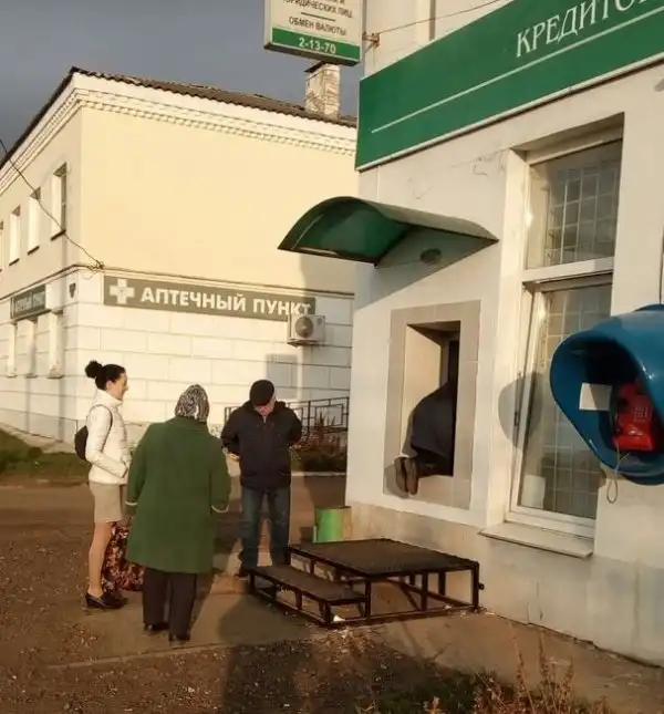 Глядя на такие фотографии, начинаешь понимать, что банки в нашей стране делают всё возможное для удобства своих клиентов. Вот такой элегантно установленный банкомат был замечен в селе Новоселицкое. Как говорится, ну хотя бы так. Главное, что он вообще там есть, да еще и работает.