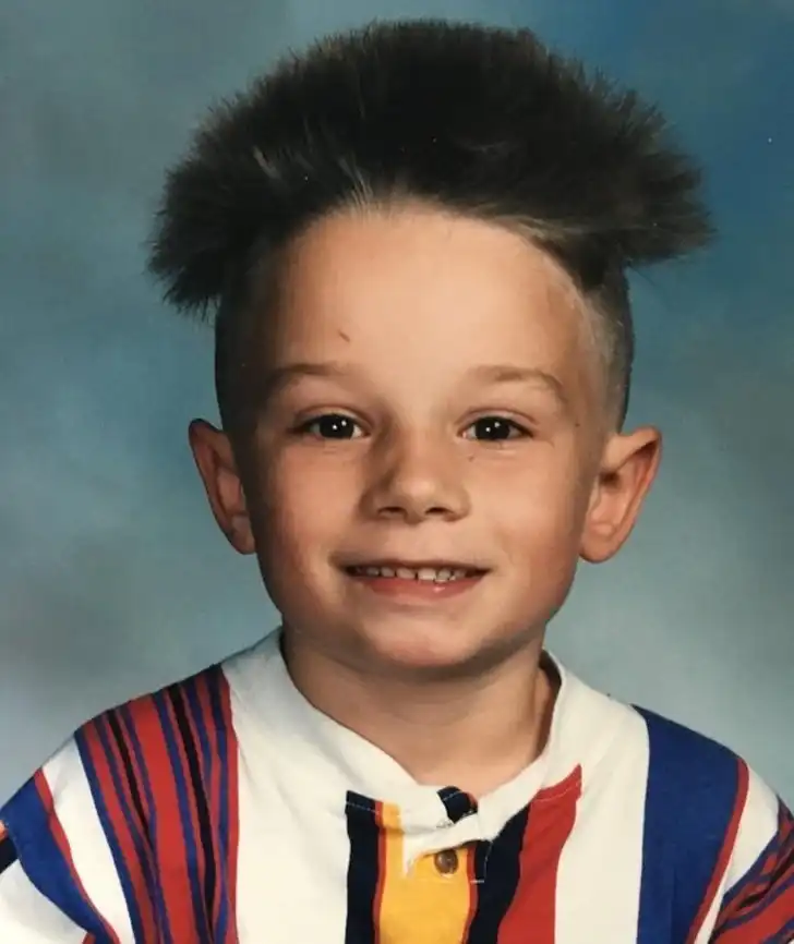 14. «1994 год, мне семь лет и я в первом классе. Мой отчим говорит, я сам выбрал такую стрижку»