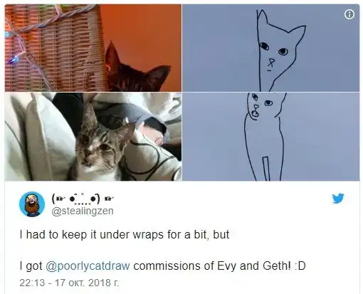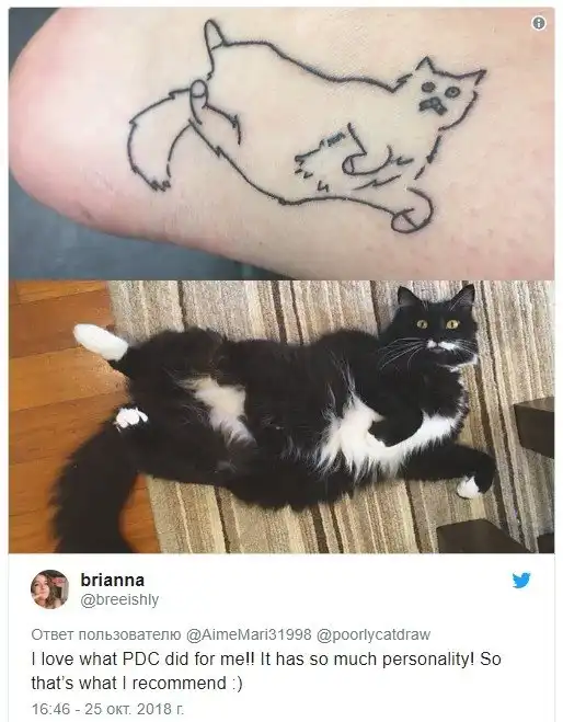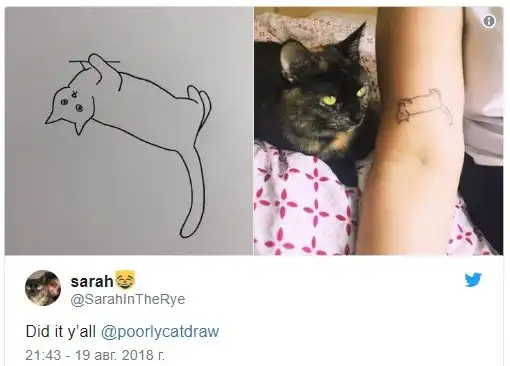 Пользователи Twitter начали публиковать в соцсети простые рисунки кошек. Изображения питомцев так понравились владельцам аккаунтов, что некоторые из них стали делать с ними татуировки.