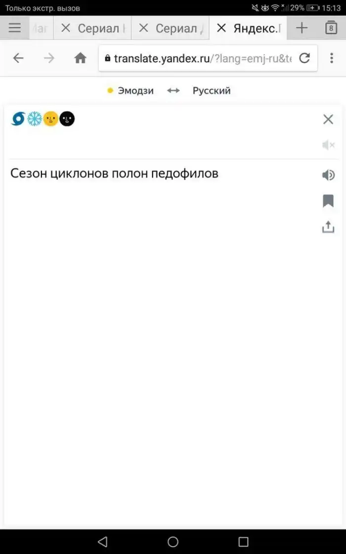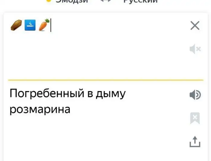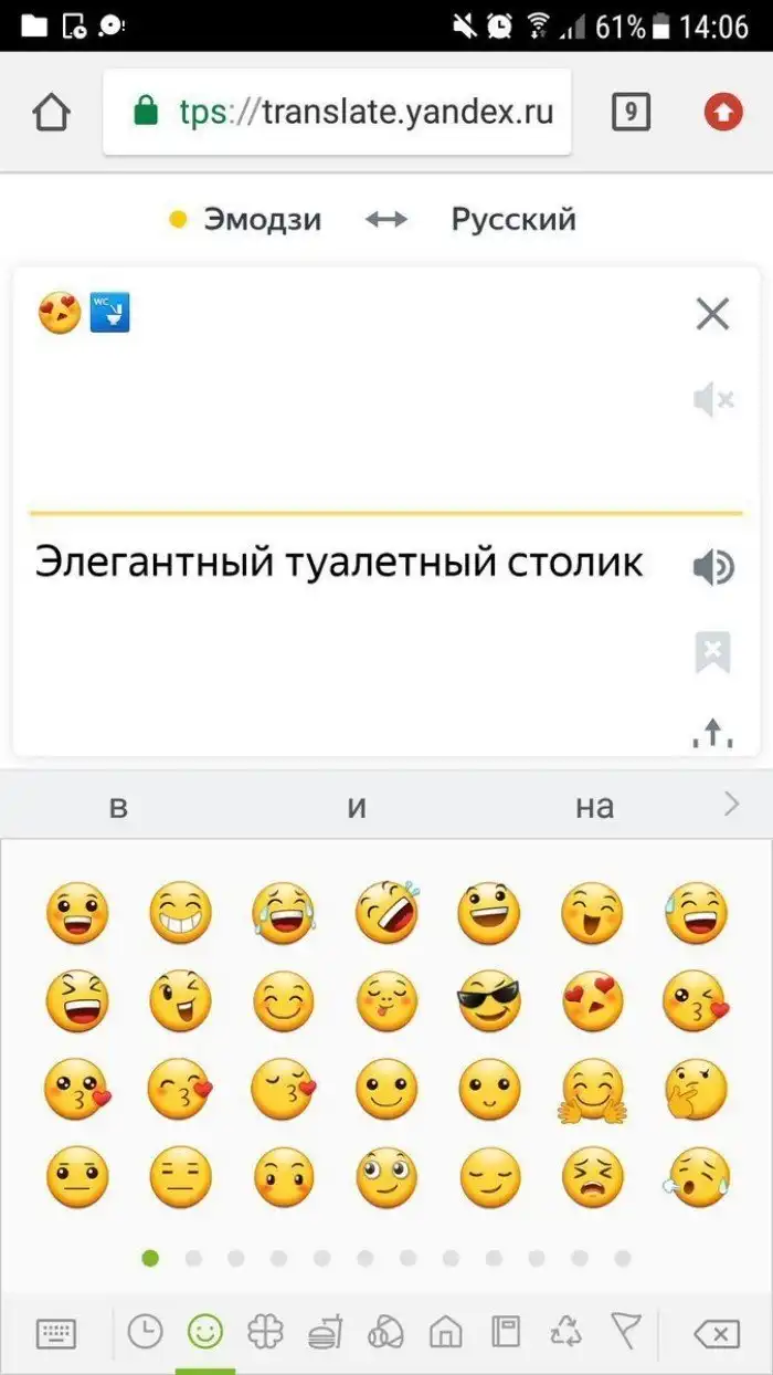 В декабре 2017 года в переводчике "Яндекс" появилась возможность переводить пиктограммы в текст и наоборот. При этом можно получать самые неожиданные слова и словосочетания. Пользователи сети решили подурачиться и напереводили кучу эмодзи - присоединяйтесь! Многие дополняют свои сообщения в смартфонах эмодзи - идеограммами и смайлами, которыми можно выразить не только эмоции, но и кратко обозначить занятие абонента в данный момент, отобразить погоду за окном и пожелания на день.