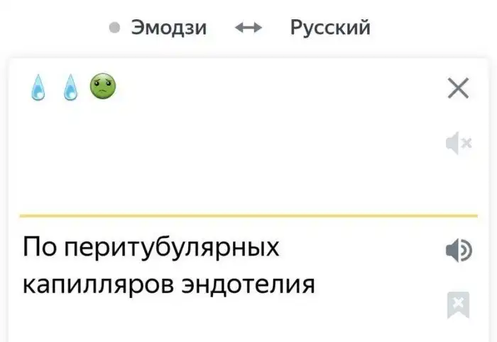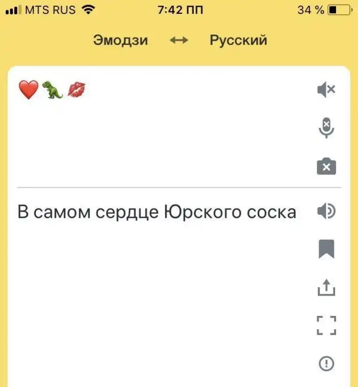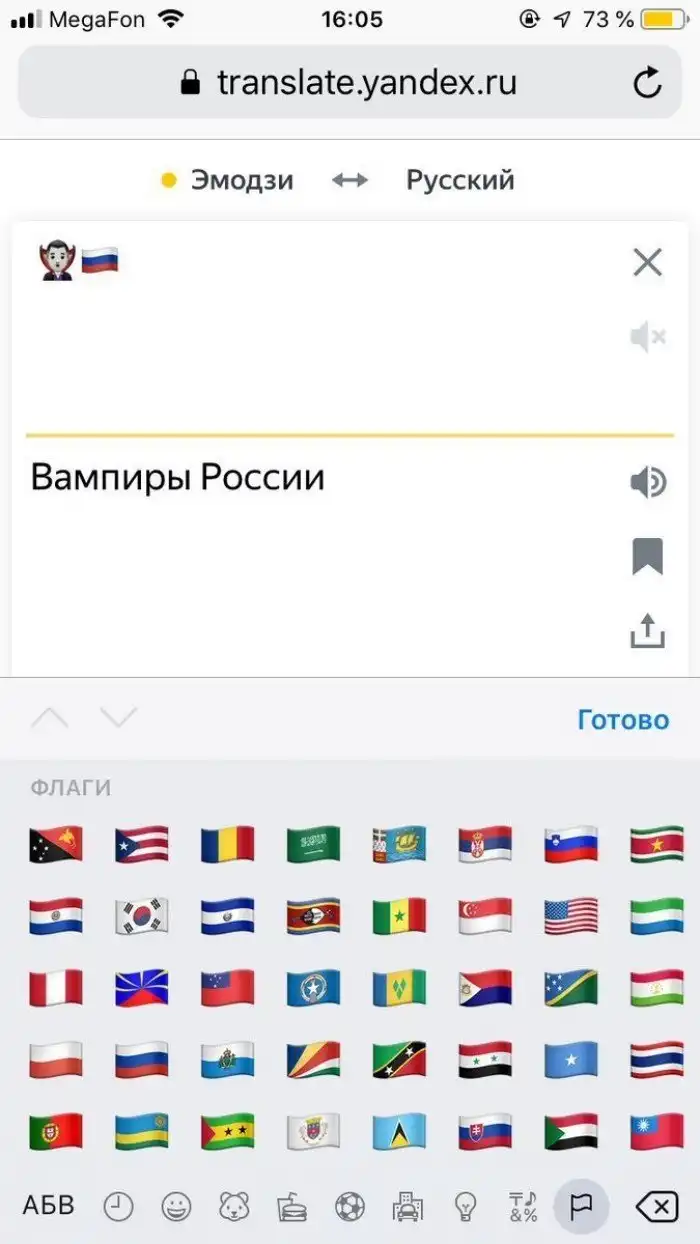 После того как в "Яндекс" - переводчик добавили возможность переводить с языка эмодзи на человеческий, пользователи заметили, что словесное обозначение этих картинок чаще всего абсолютно не совпадает с тем, что по идее они должны подразумевать. Оказывается, переводить их в текст и обратно так весело! В удобной мобильной версии пользователям удалось получить такие необычные сочетания, как "злобные единороги едят семью этой девушки" или "вампиры России", и многие признали, что это круто.