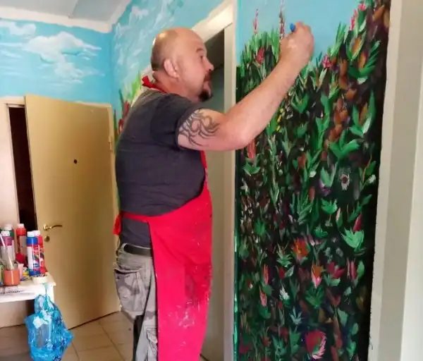 «Лестничная площадка у лифта выглядела скучно, и я решил разрисовать ее»