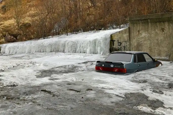 Просто замерзший водопад в черте города