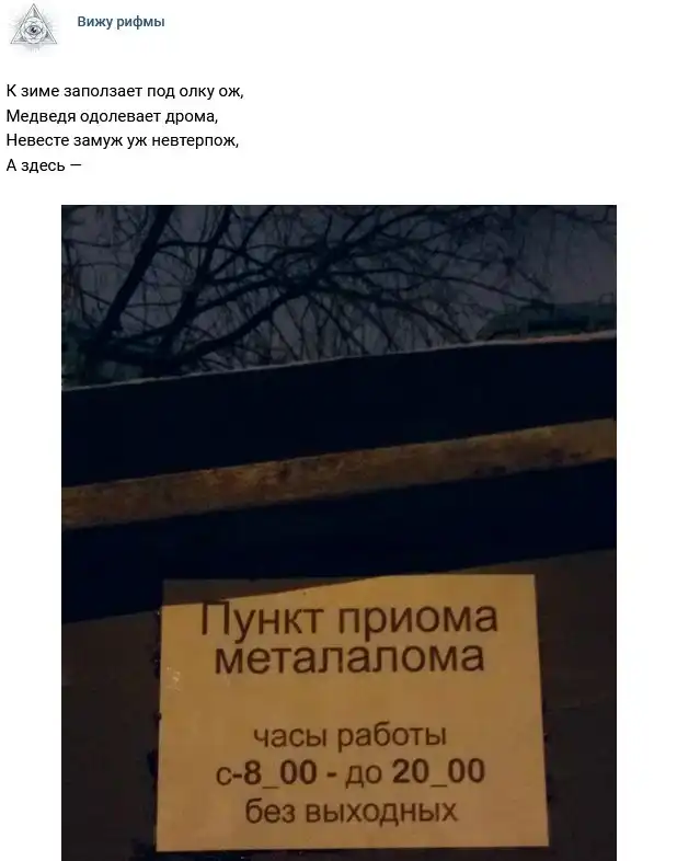 Социальные сети регулярно радуют нас не только забавными картинками и жизненными историями, но еще и умением составлять рифмы. Люди с чувством юмора придумывают целые стихотворения к тем или иным фотографиям, которые с легкостью заставят вас улыбнуться. Читаем далее.