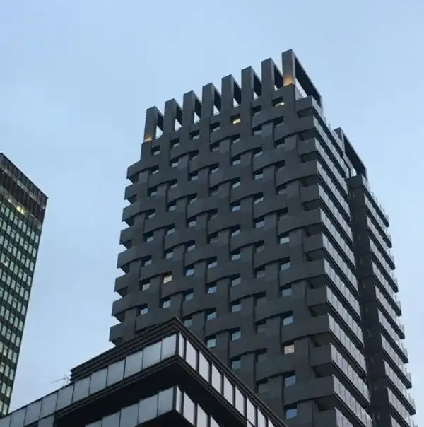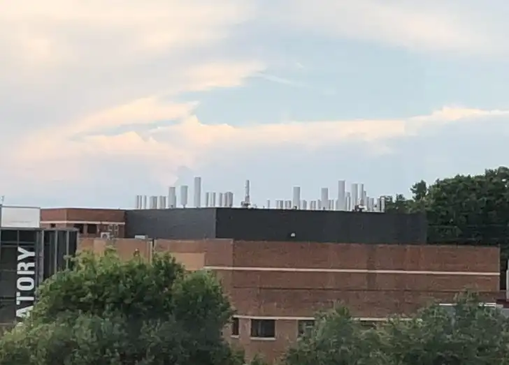 Телефонные башни на вершине этого здания выглядят как далекие небоскребы на горизонте