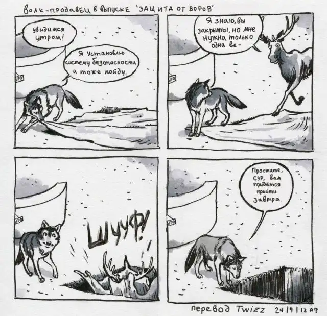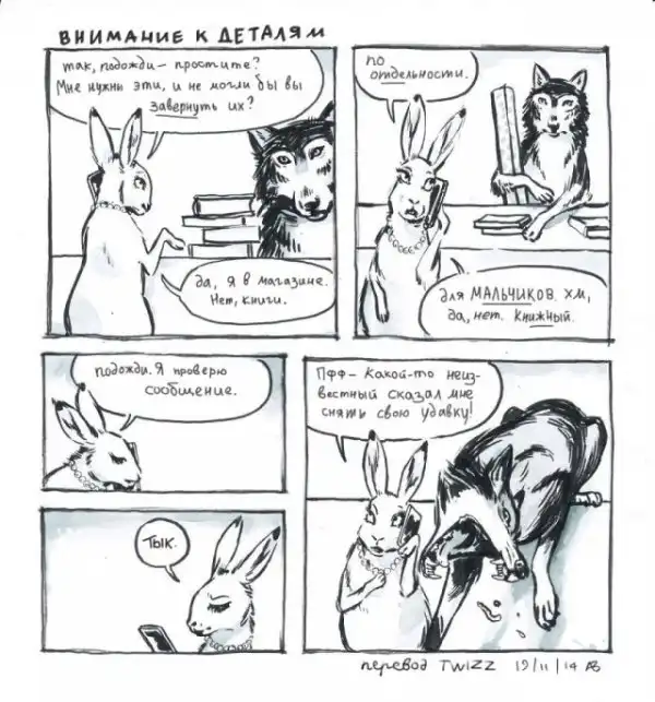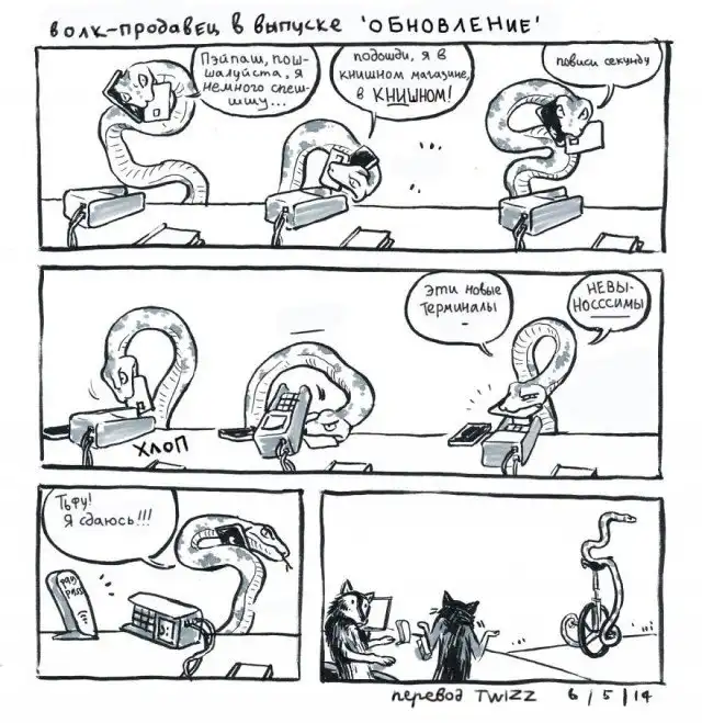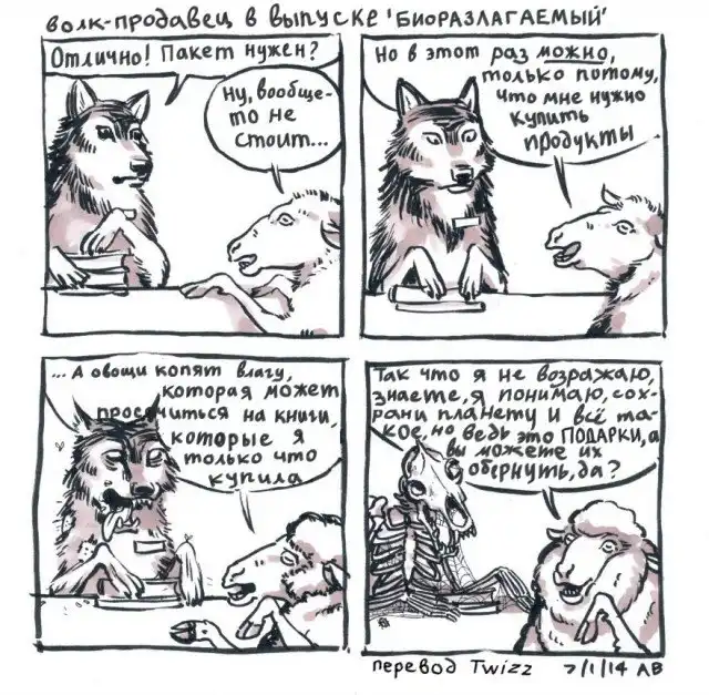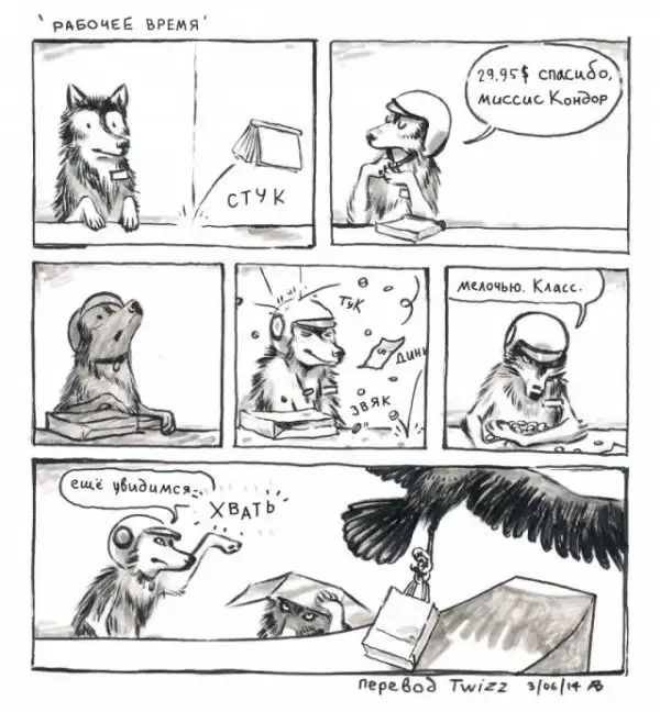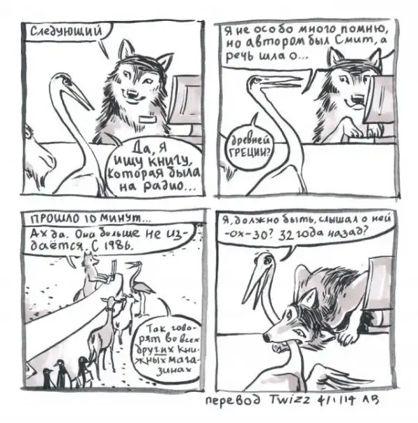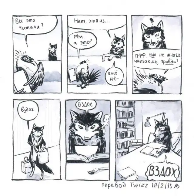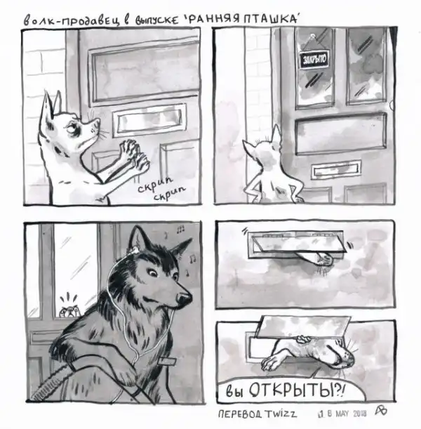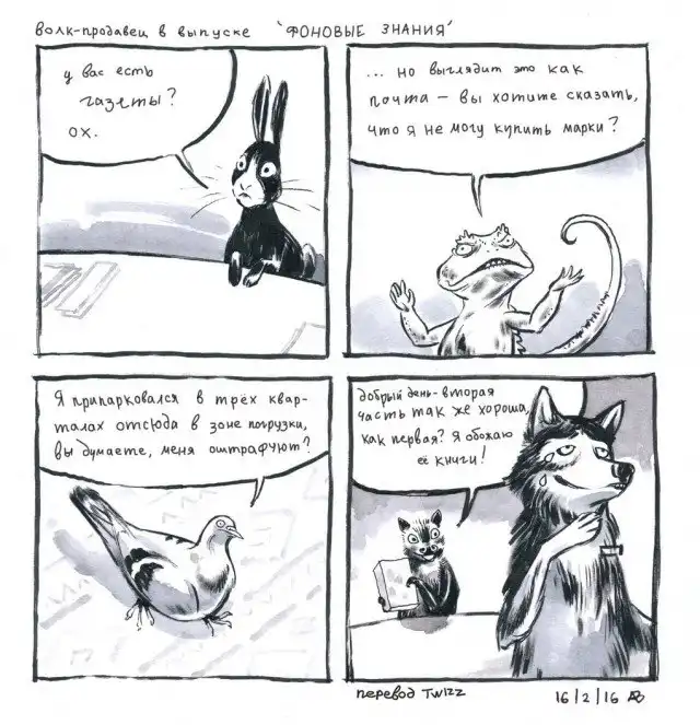 Попадали когда-нибудь в ситуацию, когда перед вами на кассе стоит человек, который решил задать продавцу кучу дурацких вопросов именно сейчас? Или же тот, кто вообще не определился, нужно ему что-то или нет? Если вы хотя бы раз имели дело с клиентами или покупателями, то вы наверняка поймёте чувства героя этих комиксов — волка, который работает продавцом в книжном магазине. Среди животных-покупателей то и дело находятся не самые приятные типы, и некоторые их диалоги непременно сумеют вас рассмешить.