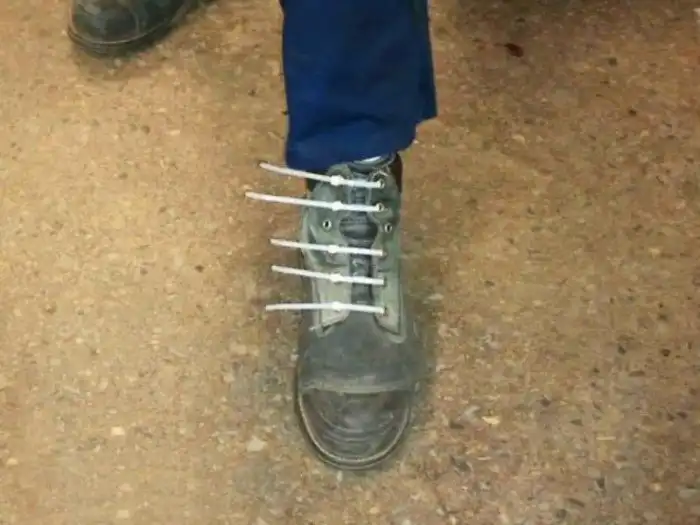 8. Кажется, этому человеку просто надоело, что шнурки постоянно развязываются