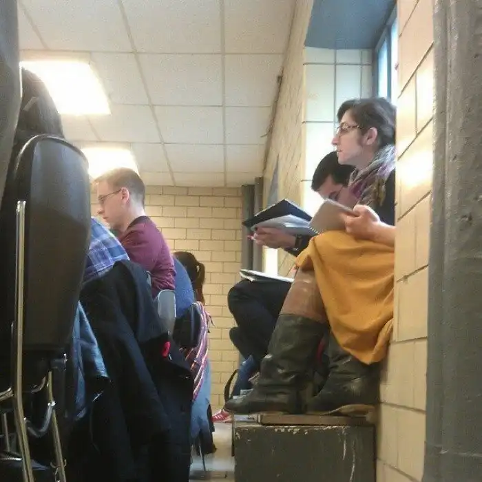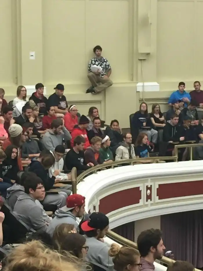 5. Опоздавшим не хватило места в аудитории, но тяга к знаниям была сильнее