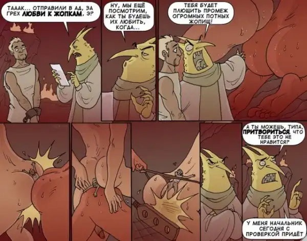 Прежде чем фапать на комикс про жопищи - обратите внимание на второй снизу слева кадр, у обладателя (обладательницы ли?) красной жопищи - есть член. :))