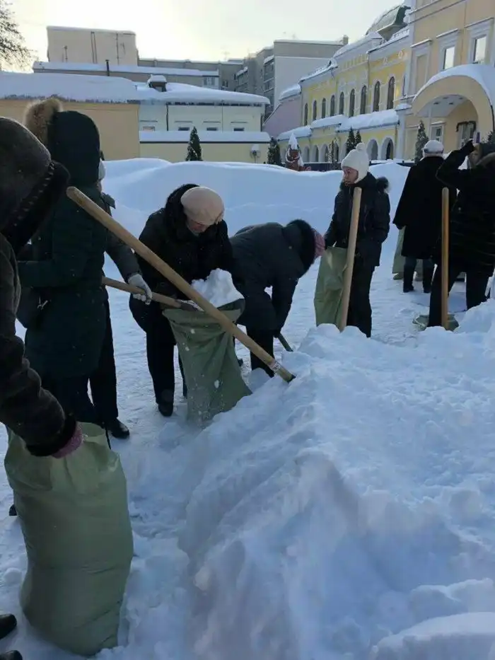 Ничего необычного, просто саратовские учителя убирают снег в мешки