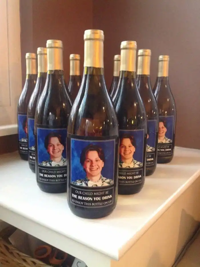 6. Родители из Огайо подарили учителям на Рождество вино с изображением их сына и надписью: "Наш ребенок может быть причиной, по которой вы пьете"
