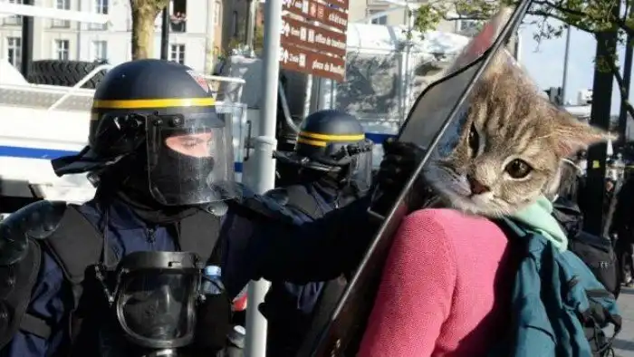 11. Котика сносит мощным звуком (пародия на легендарную фотографию Стива Стейгмана)