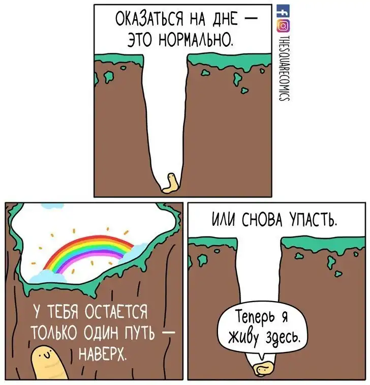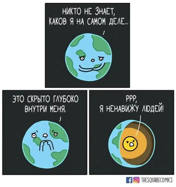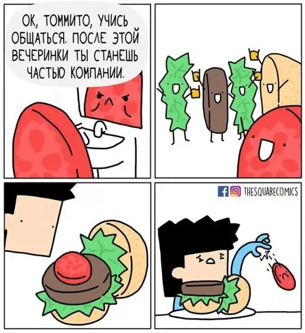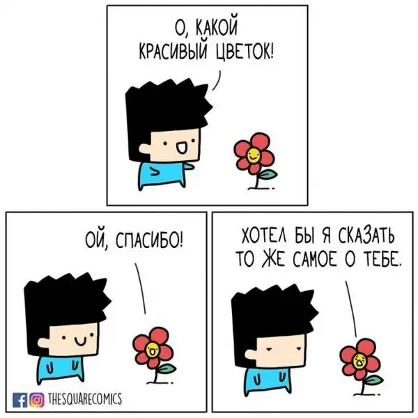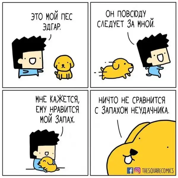 Иллюстратор Алвин Хуано уже несколько лет создаёт комиксы под названием The Square Comics, что можно перевести, как «Квадратные комиксы». Героем забавных рисунков становятся квадратные человечки, животные, растения и даже коробки. Для своих персонажей автор пишет саркастичные диалоги с тонким чёрным юмором и чаще всего в его историях кому-то очень не везёт.