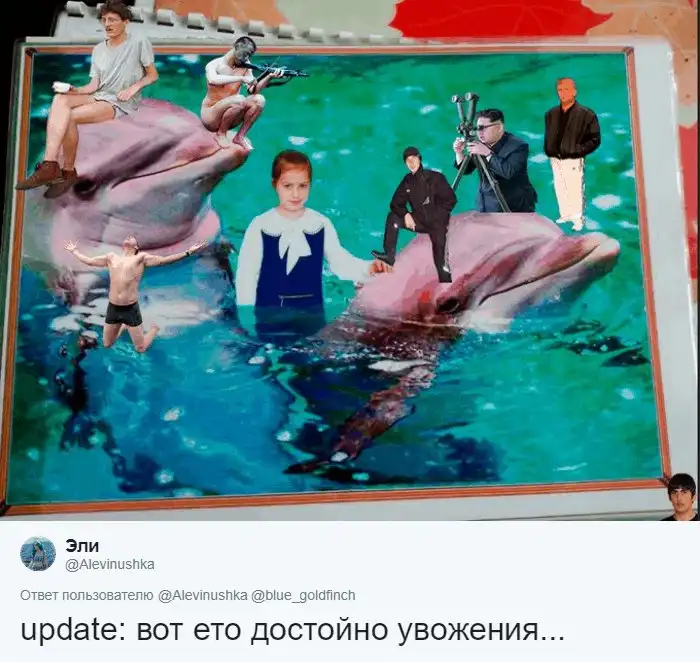Ох уж этот фотошоп! Бессмысленный и беспощадный. Наверняка у каждого где-то в дальнем углу хранится фоточка из детства, где фон заменён на какую-то дичь. У кого-то это Шрек, у кого-то Ранетки, а кому-то милее Дима Билан и феечки Винкс. Пользовательница Твиттера с ником Шиншиллашвили поделилась школьной фотографией своей подруги, где она резвится с дельфинами.