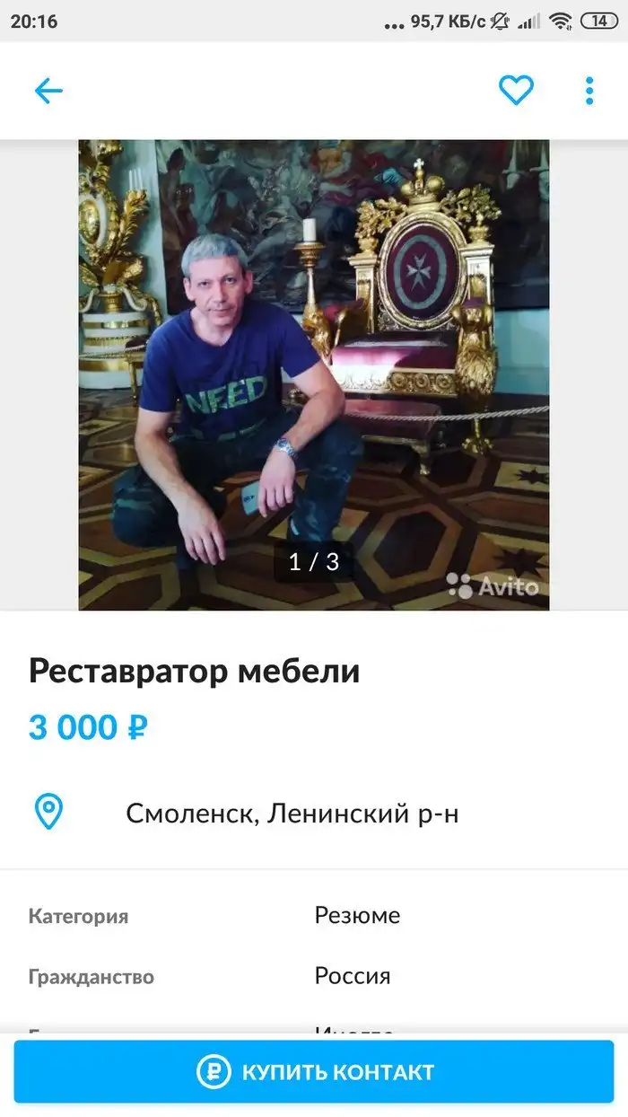 Периодически просматриваю Авито, раздел "резюме". И вот, недавно, в тренажёрном зале увидел человека, все не мог понять, откуда мне так знакомо его лицо. Лично не знакомы. А сегодня, при очередном пролистывании сайта я все понял. Итак, поехали.