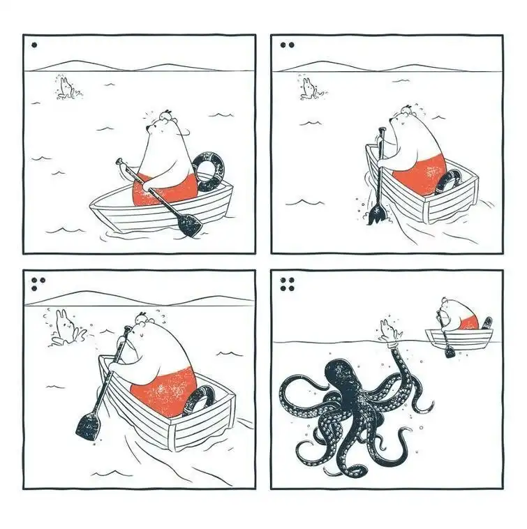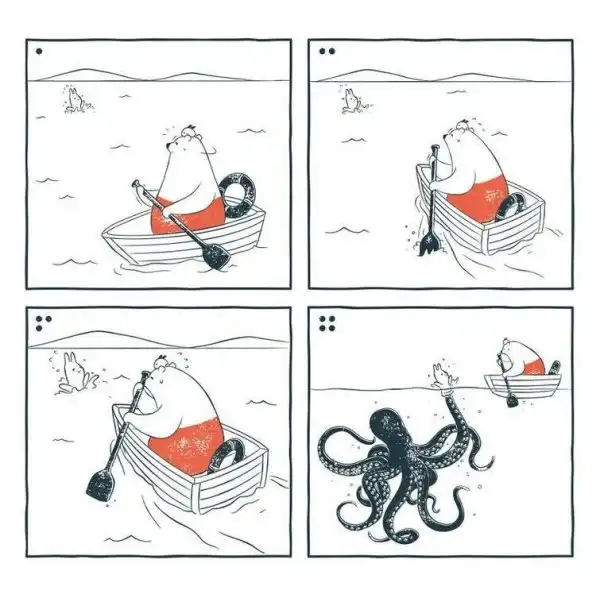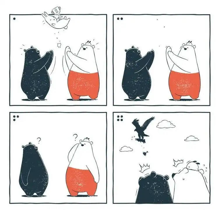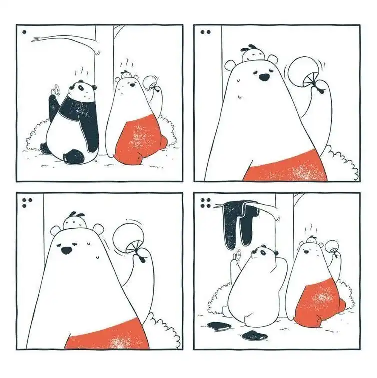 Два друга, графический дизайнер и иллюстратор Чоу Хон Лам (Chow Hon Lam) и художник Рой Ли (Roey Li), создают милые и иногда мрачноватые комиксы про медведя и его друзей без единого диалога. На этих комиксах с неожиданным финалом итак всё понятно без слов.