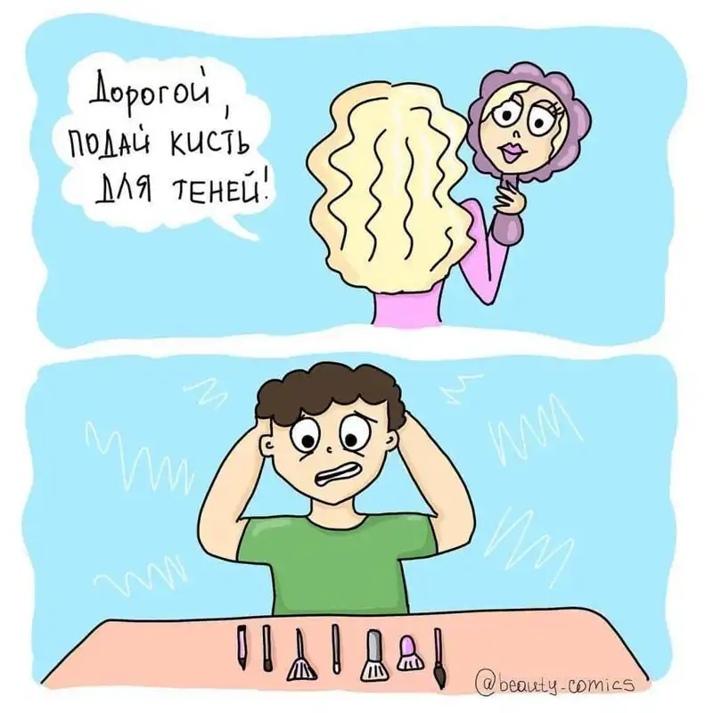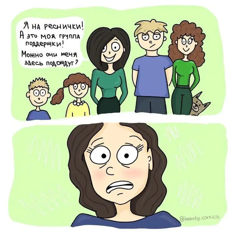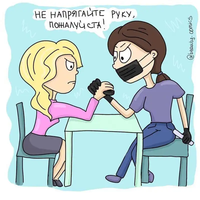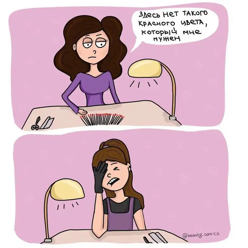 Хозяйка бьюти мастерской из Екатеринбурга по имени Мария может не только рисовать людям новые брови и укладывать уже существующие волосы. К такому багажу у неё есть и дополнение в виде небольшого чемоданчика с умением рисовать. Его она использует на полную катушку и создаёт комиксы о том, каково живётся тем, кто крутится в индустрии красоты каждый день!