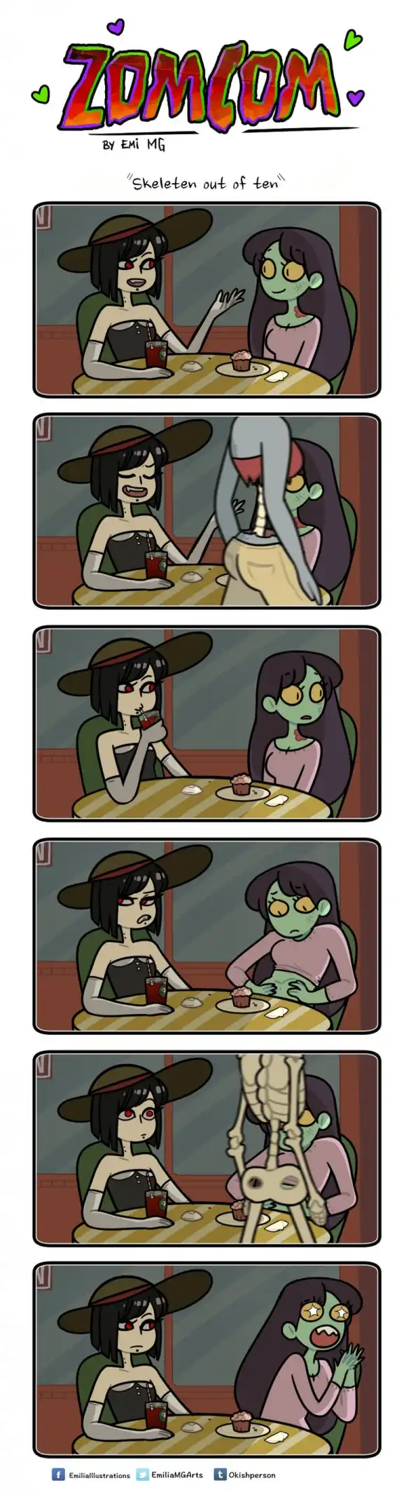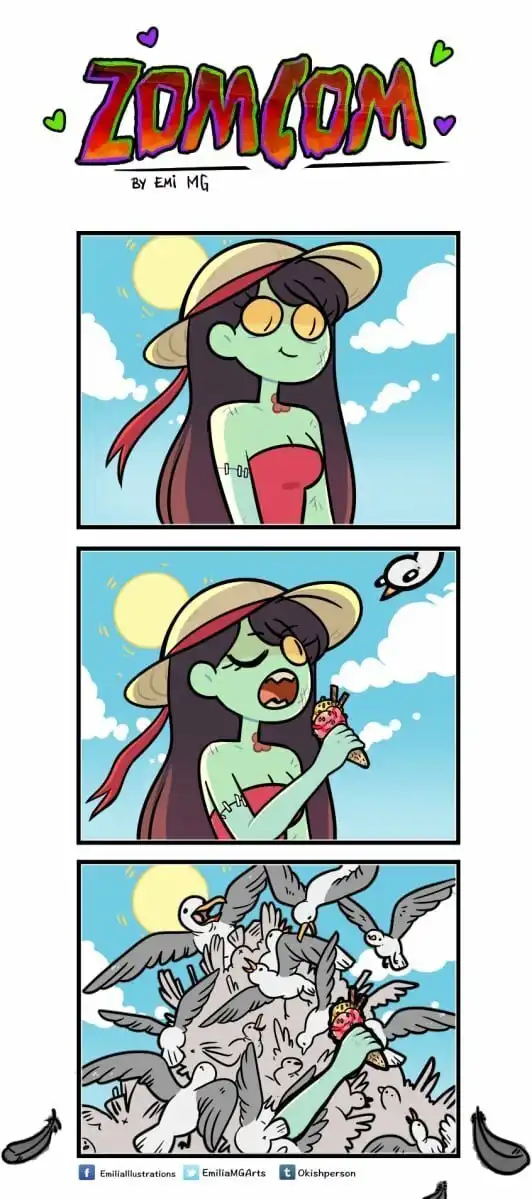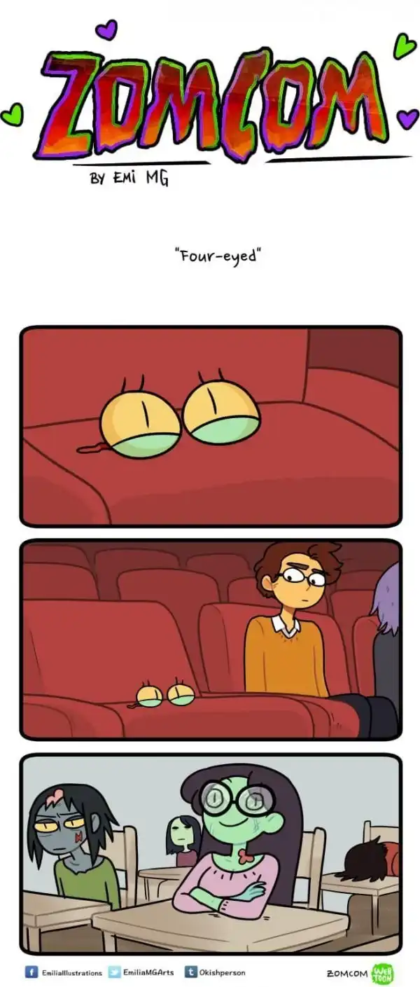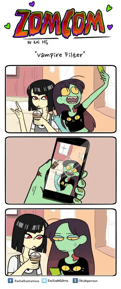 Зомби, оборотней и вампиров большинство из нас привыкло видеть только в качестве героев фильмов ужасов, где они предстают в самом неприглядном виде и кошмарят несчастных людей. Но у многих страшных бабаек есть и другая, более человечная сторона. Именно о ней и рассказывает в своих комиксах «ZomCom» британка по имени Эмилия.