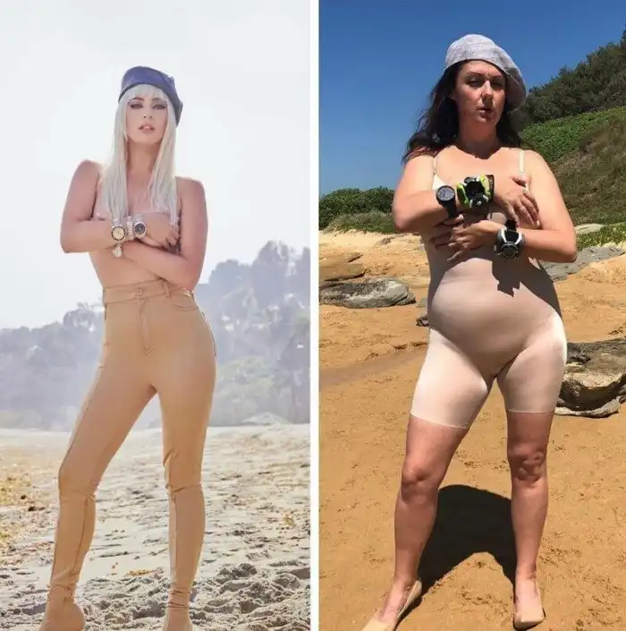 Австралийка пародирует гламурные фото, показывая, как нелепо на них бы смотрелись обычные люди
