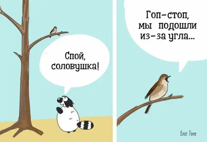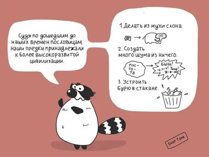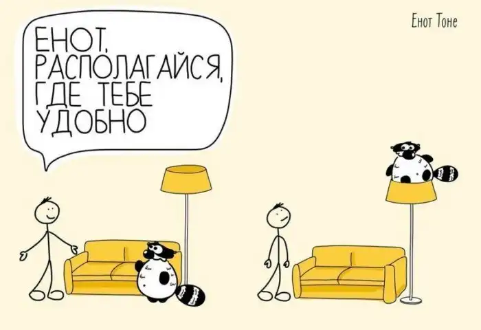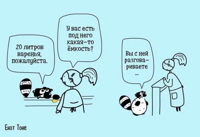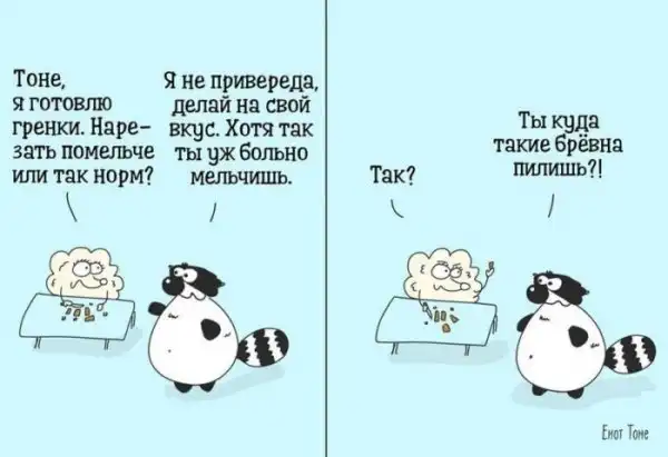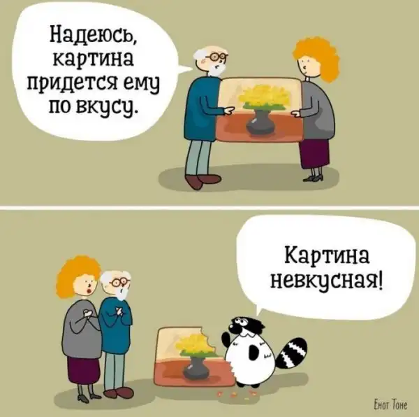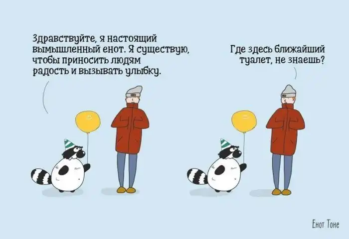 25 комиксов о добродушном еноте Тоне, который попадает в нелепые ситуации и даёт ценные советы