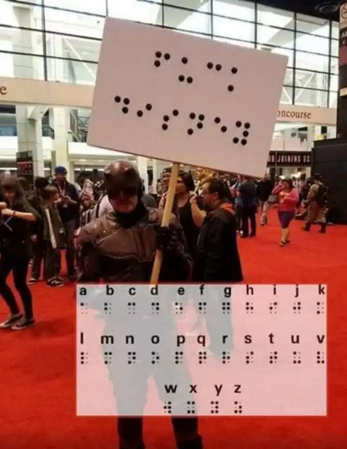 Брайль и предположить не мог, что его шрифт зможно использовать таким образом. Э-э-эх, заламинировать бы им кое-что!..