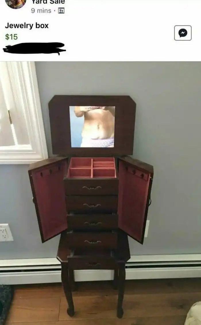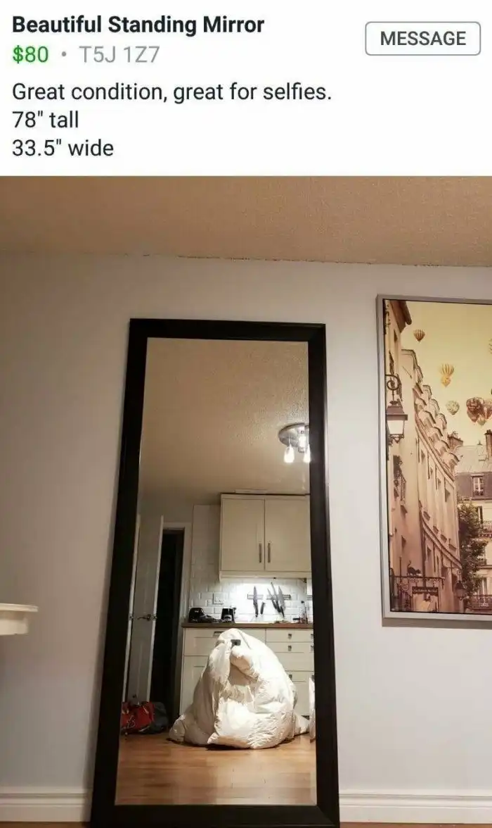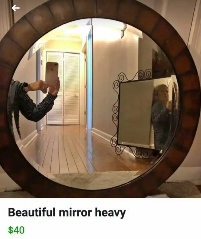 Объявления о продаже разных вещей с отражающими поверхностями всегда скрывают много интересного. Эти люди просто хотели продать зеркала, но привлекли к себе внимание благодаря оригинальным фото.